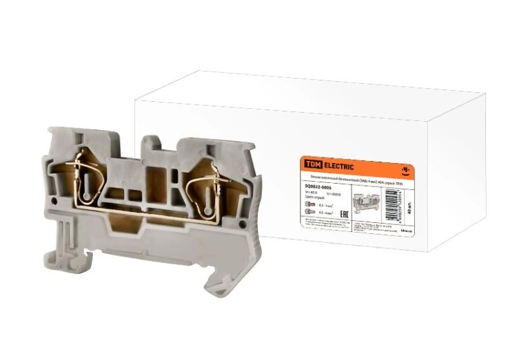 Зажим клеммный безвинтовой (ЗКБ) 4 мм2 40А серый | SQ0822-0005 | TDM