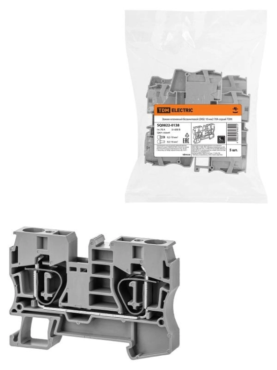 Зажим клеммный безвинтовой (ЗКБ) 10мм2 70А серый | SQ0822-0138 | TDM